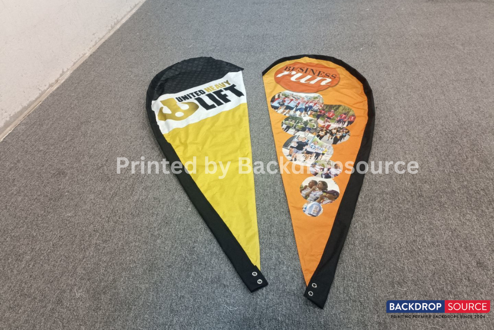 • • Teardrop-shaped flag design for smooth, eye-catching branding