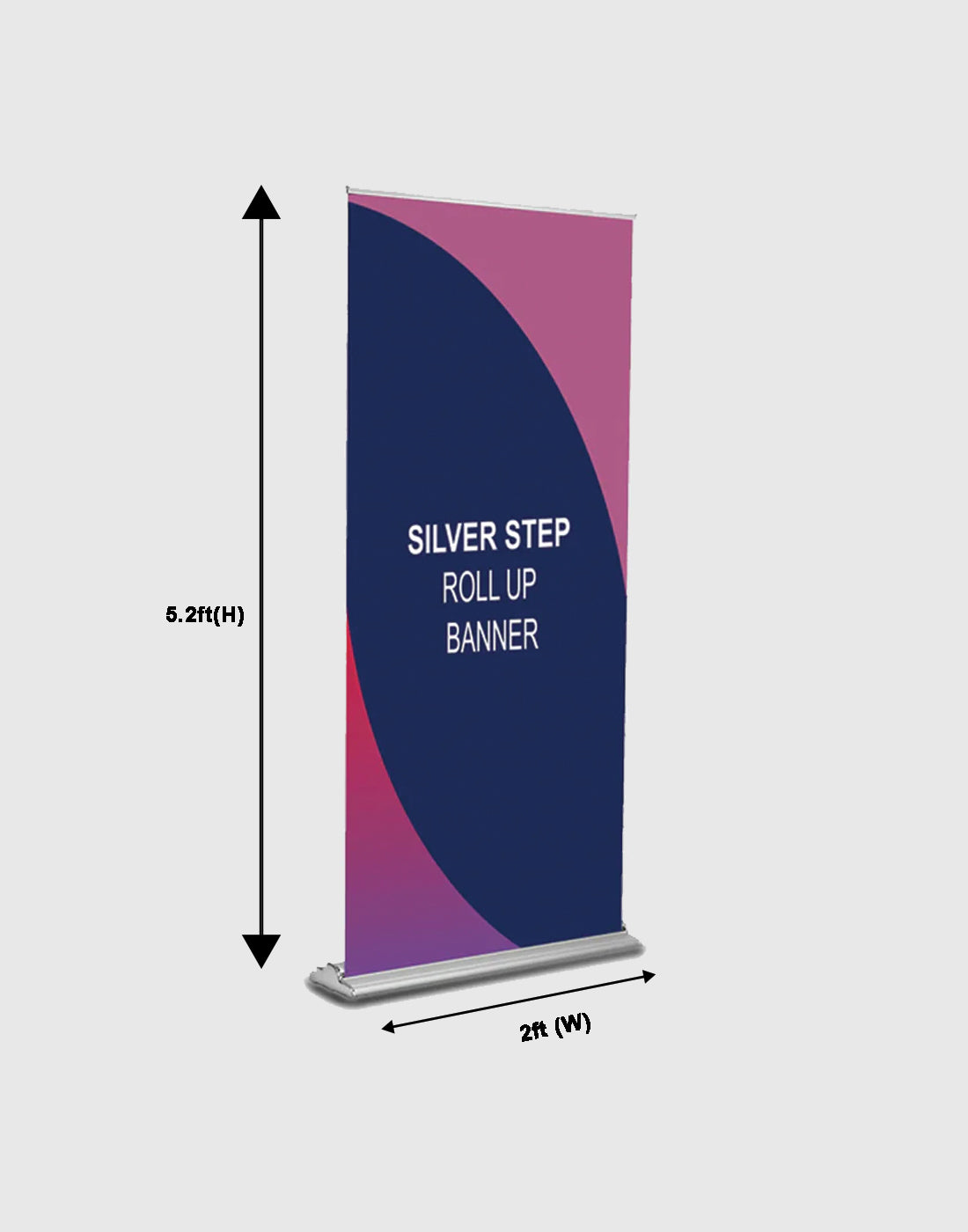 Silver Step Roll Up Banner is a premium retractable display solution designed for durability, elegance, and impact. Crafted with a sleek anodized aluminum base and adjustable telescopic pole, it offers a sturdy yet stylish presentation perfect for trade shows, retail displays, and corporate events. The high-quality graphic is printed in full color on anti-curl, tear-resistant material for long-lasting use and sharp, vibrant visuals. With quick, tool-free setup and a padded carrying case included, the Silver Step Roll Up Banner is as convenient as it is professional. It’s available in multiple widths and supports graphic replacements, making it a smart, reusable investment for businesses looking to elevate their brand presence.