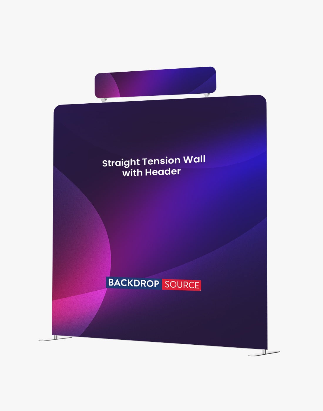With Header : Includes 1 header frame with printed graphics (size 4ft W x 1ft H, customizable) and 2 clamps.