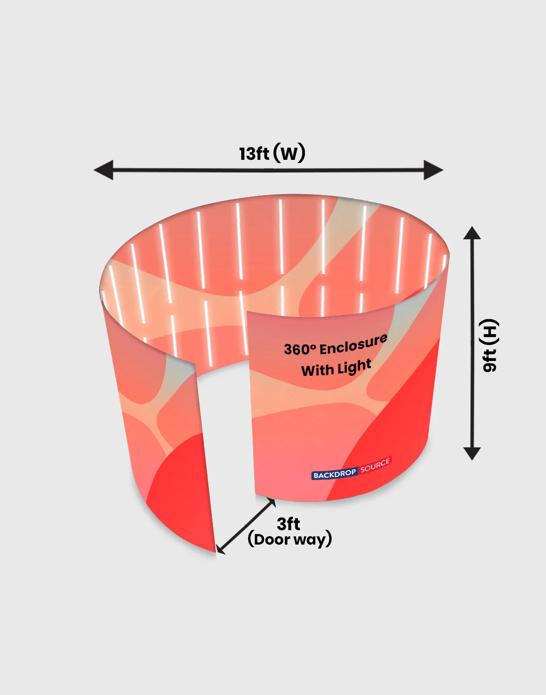 Frame Dimensions : 13ft wide x 9ft height x 3.3ft doorway