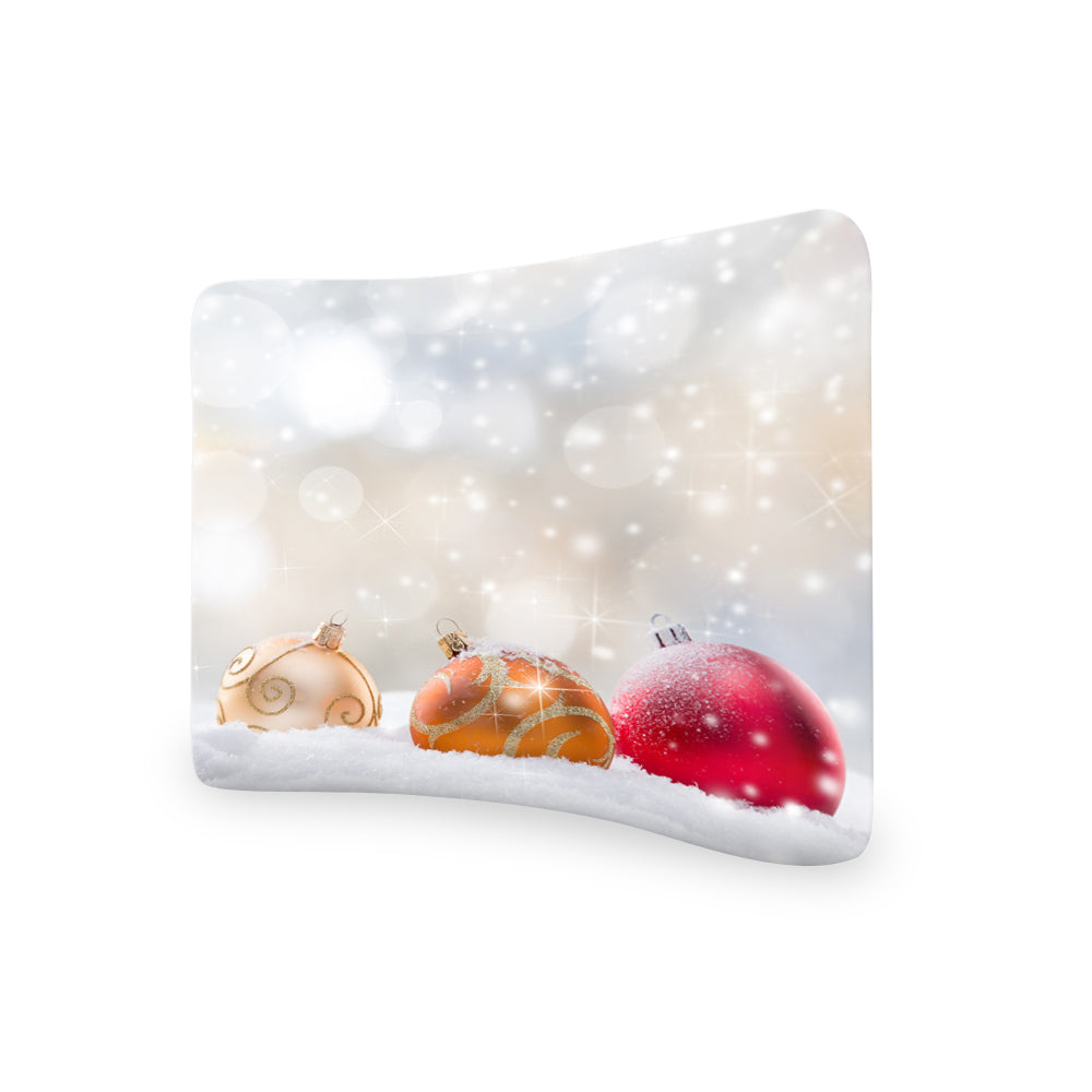 Made of 100% machine-washable polyester, our banner fabric is printed with our custom TrueKolor fabric printing process. With TrueKolor, your design will stay vibrant and clear through many washes, in any kind of weather. Over time, your curved fabric banner will preserve its hue, with colors from the darkest black to the brightest white remaining vibrant and strong.