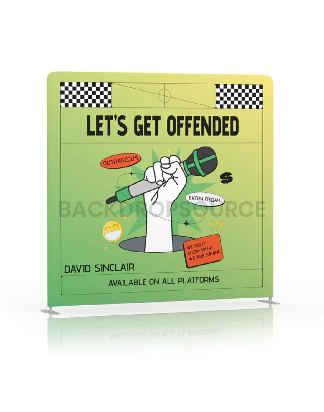 With the option to feature two different designs on the same backdrop, you can switch between styles effortlessly, offering versatility for different podcast themes or branding needs. The premium stretch fabric backdrop fits seamlessly over the lightweight aluminum frame, providing a sleek, professional look. Simply secure it with the fabric zipper for a flawless fit.