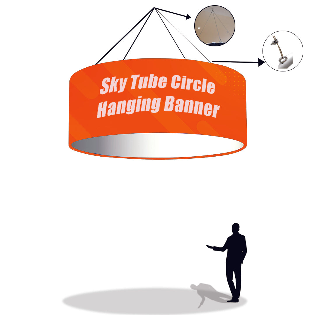 The Sky Tube Circle Hanging Banner is a dynamic and attention-grabbing display solution designed to elevate your booth at trade shows, exhibitions, and events. Its circular shape, suspended overhead, provides 360-degree visibility, ensuring your branding and messaging are seen from every angle. Made from lightweight, durable materials, the banner features high-quality dye-sublimation printed graphics that offer vivid, crisp visuals. The sky tube design allows for easy assembly and disassembly, making it perfect for quick setups at large events. The hanging structure draws attention from afar, creating an engaging focal point in any space. Ideal for maximizing brand visibility and creating a unique, professional presence, the Sky Tube Circle Hanging Banner is a must-have for exhibitors looking to stand out.