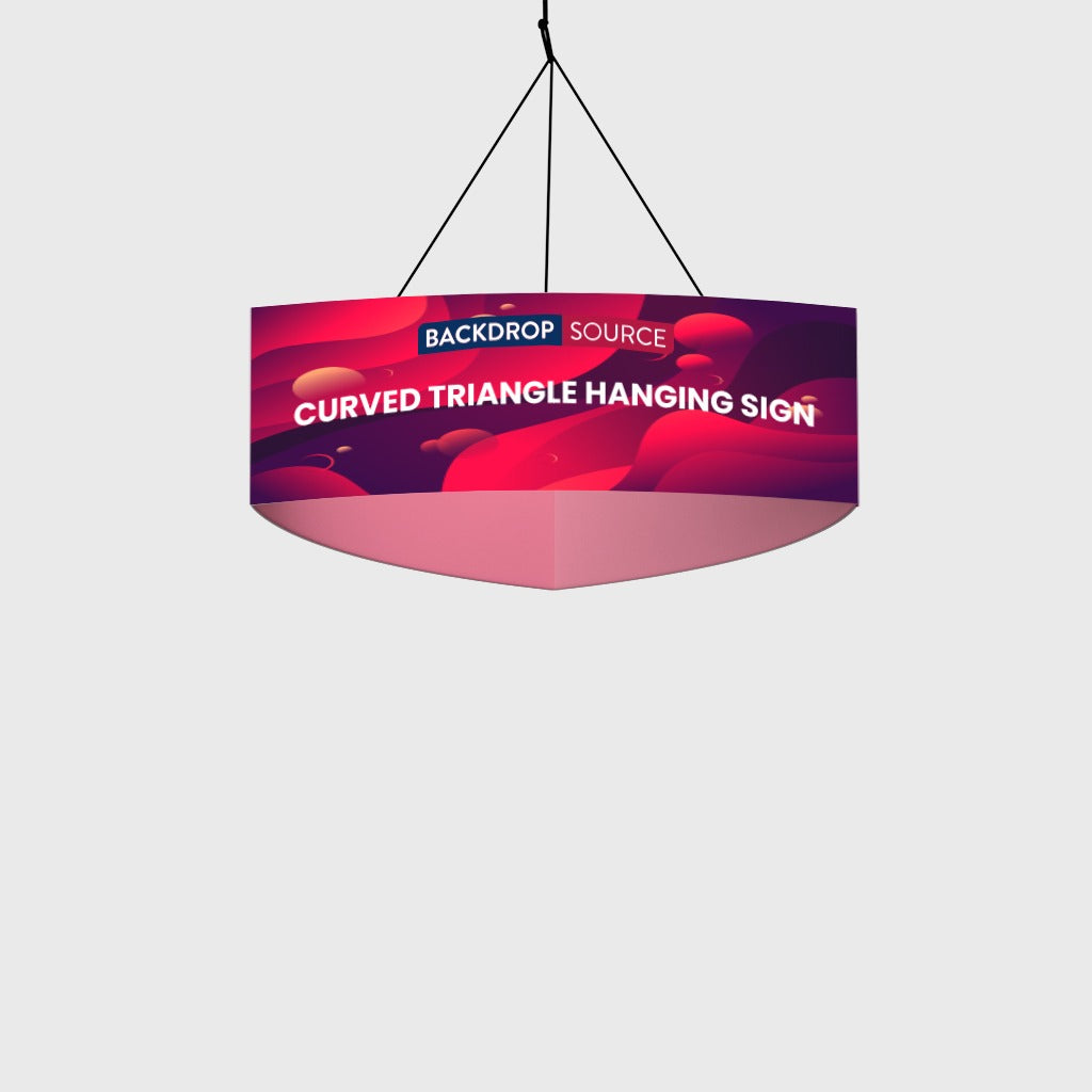 The Curved Triangle Hanging Banner is a visually striking display solution designed to make your booth stand out at trade shows, exhibitions, and events. Featuring a unique curved triangular shape, this banner offers dynamic 360-degree visibility, ensuring your branding and messaging are seen from multiple angles. The high-quality dye-sublimation printed graphics deliver vibrant, sharp visuals that enhance your brand’s presence. The lightweight frame allows for easy assembly and disassembly, ensuring quick setup and transport. Suspended overhead, the curved triangle design adds depth and modern flair to your booth, creating an eye-catching focal point that draws attention and maximizes brand exposure in high-traffic areas. Ideal for exhibitors seeking a distinctive, impactful display.