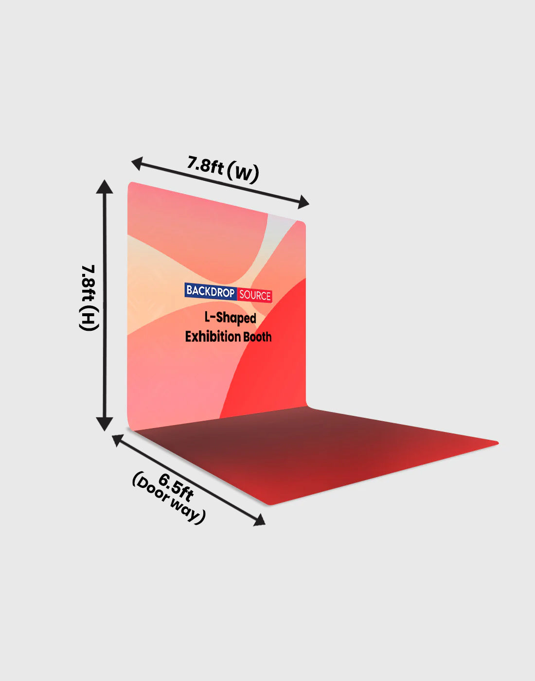 - Shape : L-shaped configuration with two interconnected sections, providing ample space for product displays, branding, and interactive elements
