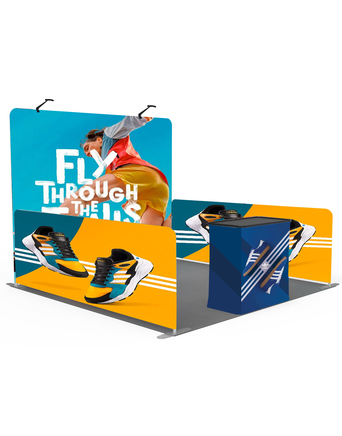 Ultimate 10x10 Booth Kit with Backwall, Side Walls, Counter & LED Lights is a complete trade show solution designed to deliver maximum brand impact in a professional, easy-to-assemble package. This all-in-one kit includes a full-height backwall, two matching side walls, a portable counter, and bright LED lights that illuminate your custom graphics with vibrant clarity. Built with lightweight aluminum frames and premium dye-sublimated fabric, the display offers tool-free setup and easy transport. The enclosed design creates a defined space that draws attention and boosts engagement, while the counter doubles as a functional workstation or brochure holder. Perfect for expos, conventions, and retail activations, the Ultimate 10x10 Booth Kit provides a clean, cohesive, and eye-catching presentation every time.