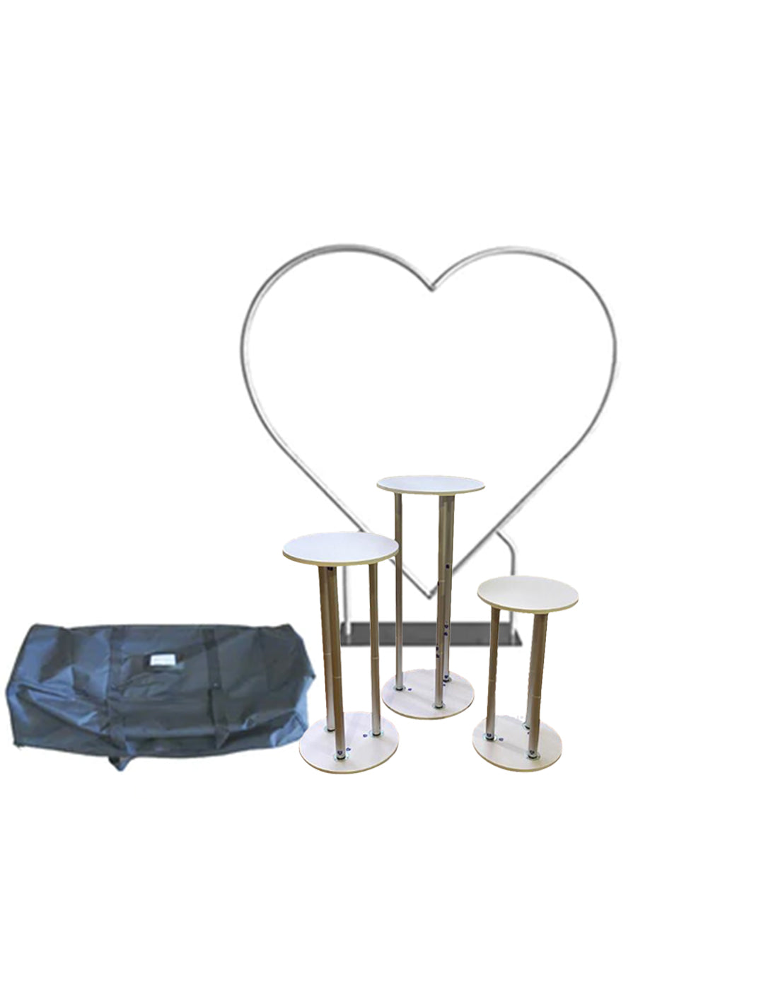 Our heart backdrop stand combines economy aluminum tube frames with zipper pillowcase fabric graphics. Essential tube structures are bungee corded and come with a one-year limited hardware warranty.