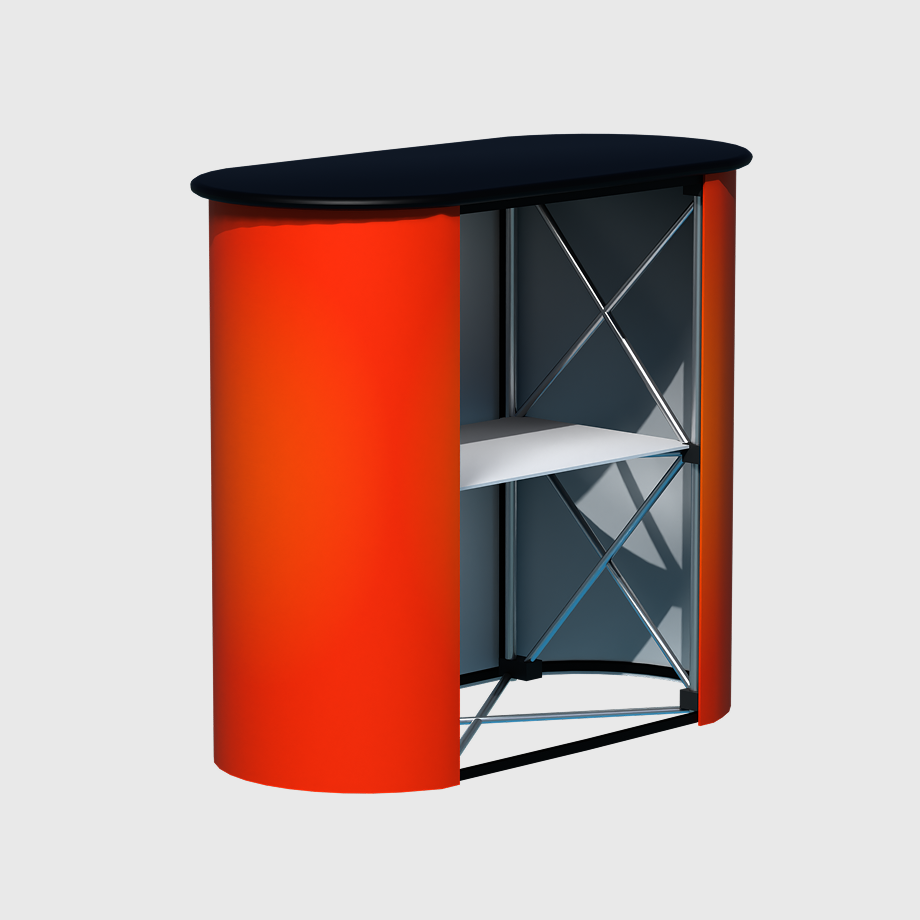 The Velcro Popup Counter 1 x 2 is a sleek and portable display solution, perfect for trade shows, exhibitions, and promotional events. Designed with a Velcro pop-up frame, it enables quick, tool-free setup while maintaining a sturdy and professional structure. The high-quality printed fabric graphic easily attaches to the frame using Velcro strips, ensuring a smooth, seamless finish. Compact yet impactful, this counter offers ample space for brochures, product displays, or a laptop, making it a functional and stylish centerpiece for any booth or event setup.