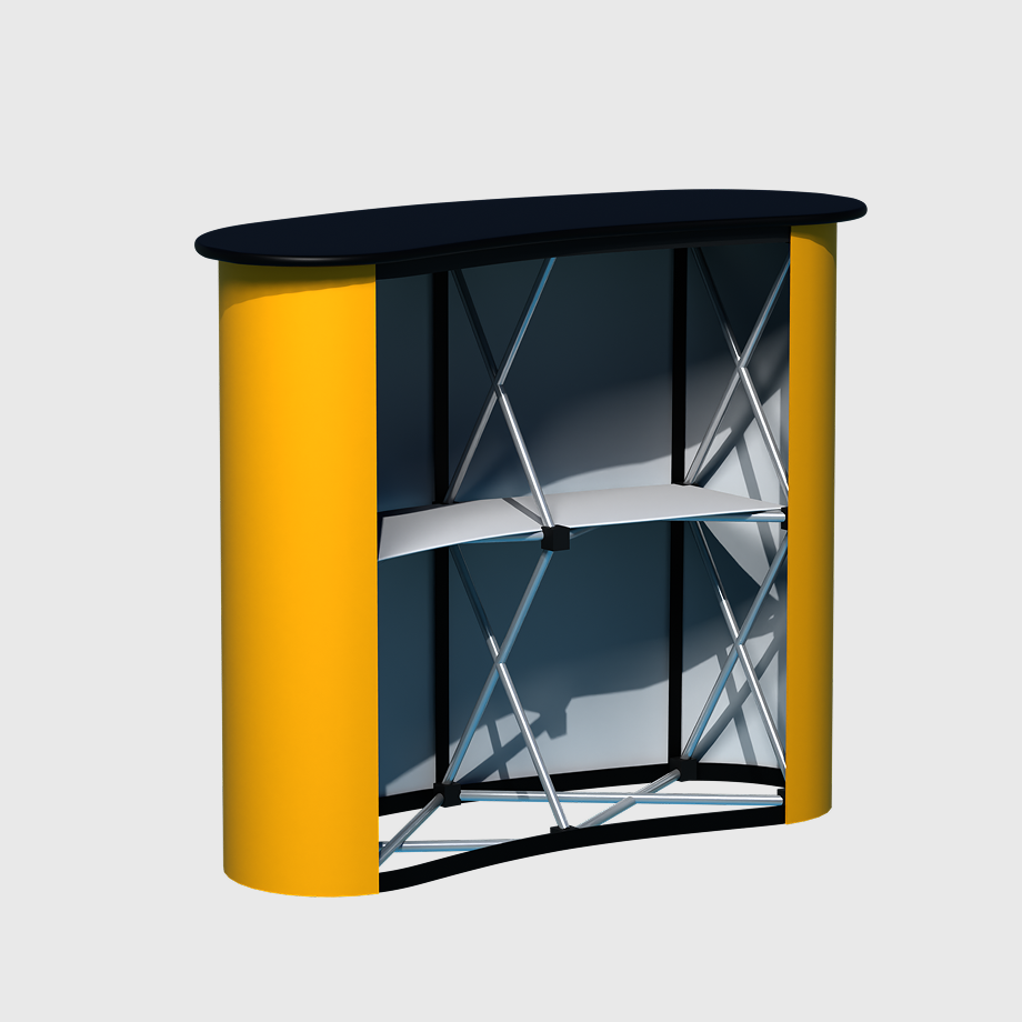 The Velcro Popup Counter 2 x 2 is a sleek and portable display solution, perfect for trade shows, exhibitions, and promotional events. Designed with a Velcro pop-up frame, it enables quick, tool-free setup while maintaining a sturdy and professional structure. The high-quality printed fabric graphic easily attaches to the frame using Velcro strips, ensuring a smooth, seamless finish. Compact yet impactful, this counter offers ample space for brochures, product displays, or a laptop, making it a functional and stylish centerpiece for any booth or event setup.