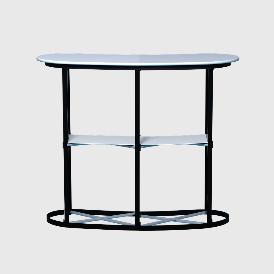 - • Sturdy MDF countertop ideal for demos, brochures, or product display