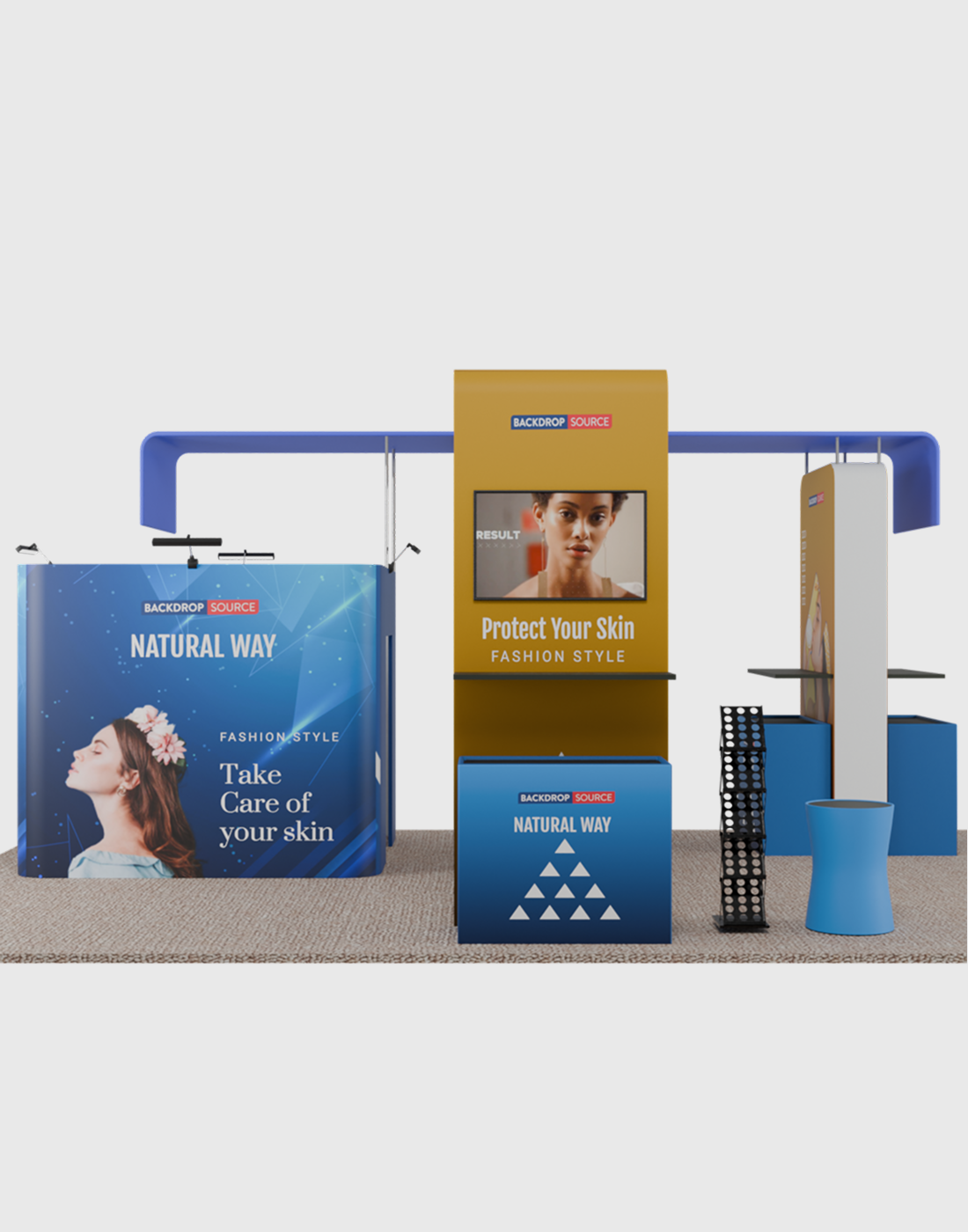 Modular Booth Kits 20ft x 20ft are designed to transform large exhibit spaces into dynamic, branded environments that leave a lasting impression. These kits feature a combination of seamless backwalls, arches, counters, and accessories—all built with lightweight, durable aluminum frames and vibrant, dye-sublimated fabric graphics. The modular design allows for multiple configurations, giving you flexibility to adapt your layout to different events or floorplans. Tool-free assembly ensures fast setup, while the bold visuals and open layout invite visitor interaction. Ideal for trade shows, expos, and brand activations, Modular Booth Kits 20ft x 20ft offer a polished, professional presentation with the freedom to scale or customize. Make a statement with a spacious, high-impact solution that truly showcases your brand.