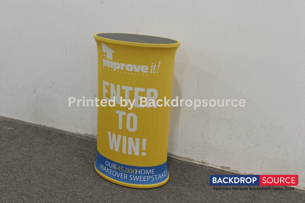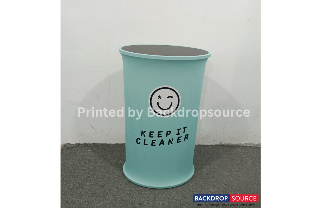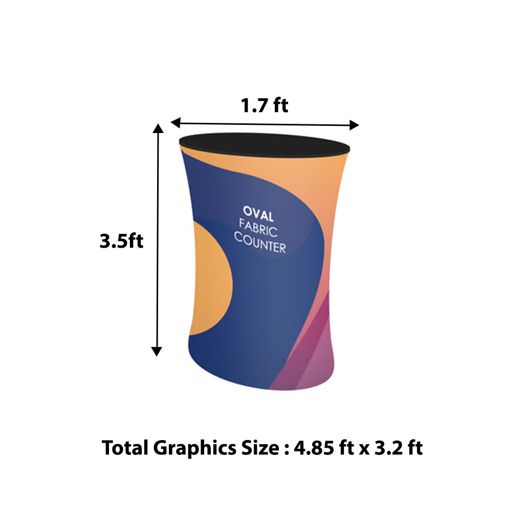 The Oval Fabric Display Counter is a stylish and functional promotional tool perfect for exhibitions, trade shows, and retail displays. Designed with a lightweight aluminum frame and vibrant custom-printed stretch fabric, it offers a sleek, professional look with 360° branding. Easy to set up with tool-free assembly, this counter is portable, durable, and includes a sturdy tabletop for displaying products or marketing materials. The fabric is wrinkle-resistant, machine washable, and interchangeable—ideal for businesses seeking reusable and impactful display solutions.