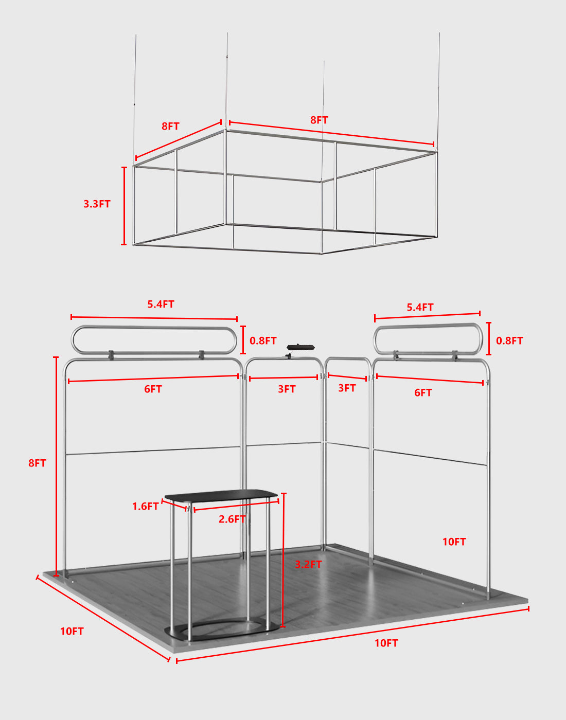 Frame Dimensions : 8ft wide x 3.3ft height * 4sides