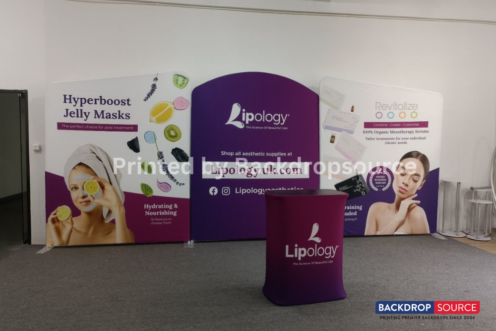 - • Customizable fabric prints to match your branding, messaging, or promotional content