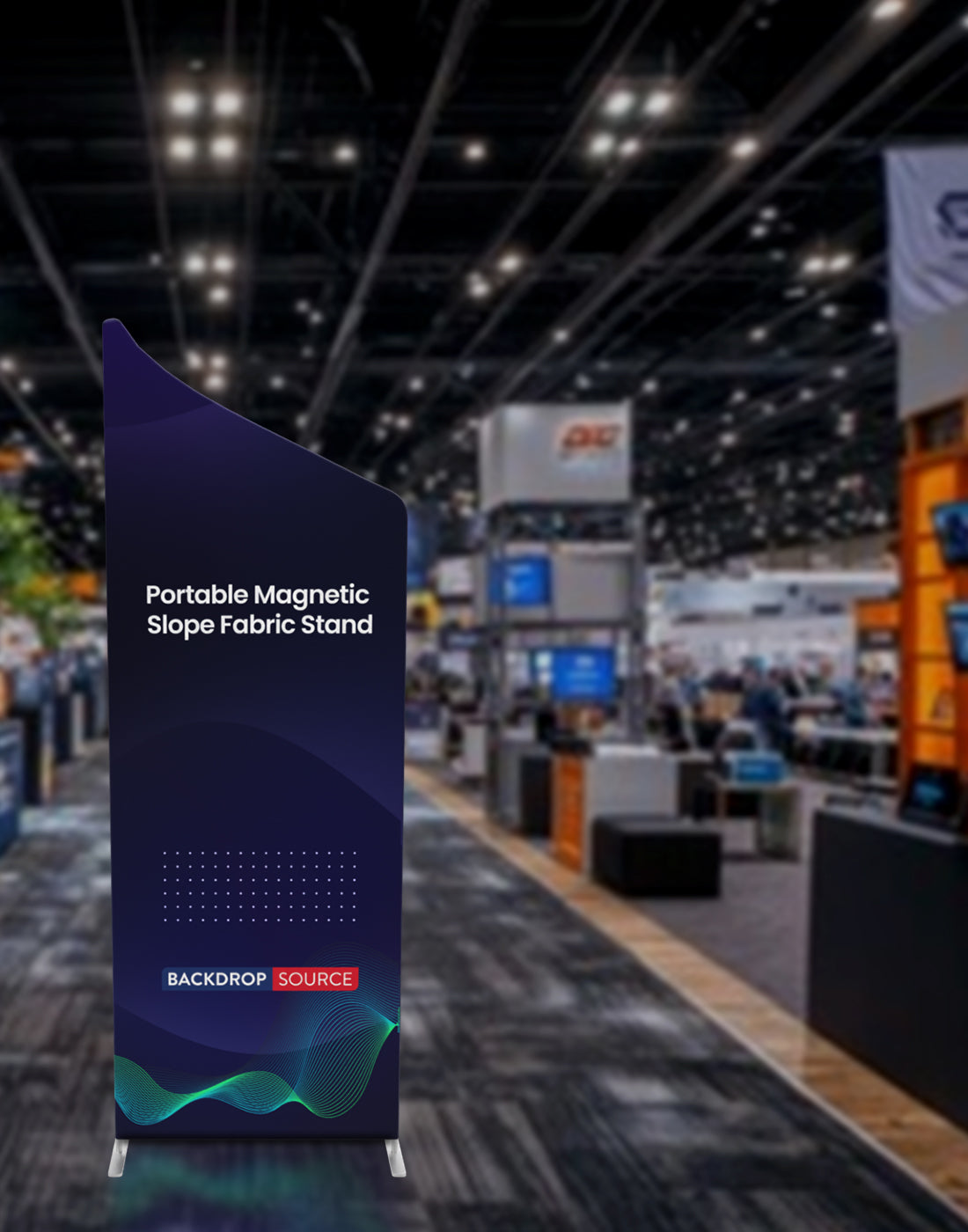 - Design : Slope fabric display stand with a magnetic connection system for smooth, tensioned fabric