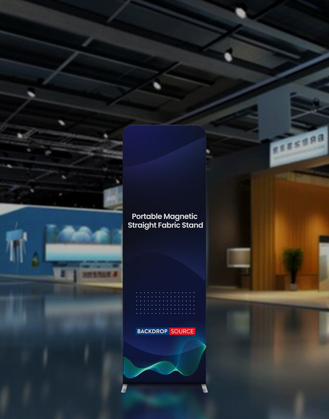 The Portable Magnetic Straight Fabric Stand offers a sleek and flexible display solution ideal for trade shows, events, and retail environments. Its lightweight aluminum frame features strong magnetic connectors, enabling quick, tool-free assembly and easy adjustments. The curved design provides an elegant, modern look, while the wrinkle-resistant fabric showcases vibrant, dye-sublimated graphics for lasting visual impact. Compact and easy to transport, this stand delivers professional branding with minimal effort, making it perfect for creating eye-catching presentations and memorable customer experiences wherever you go.