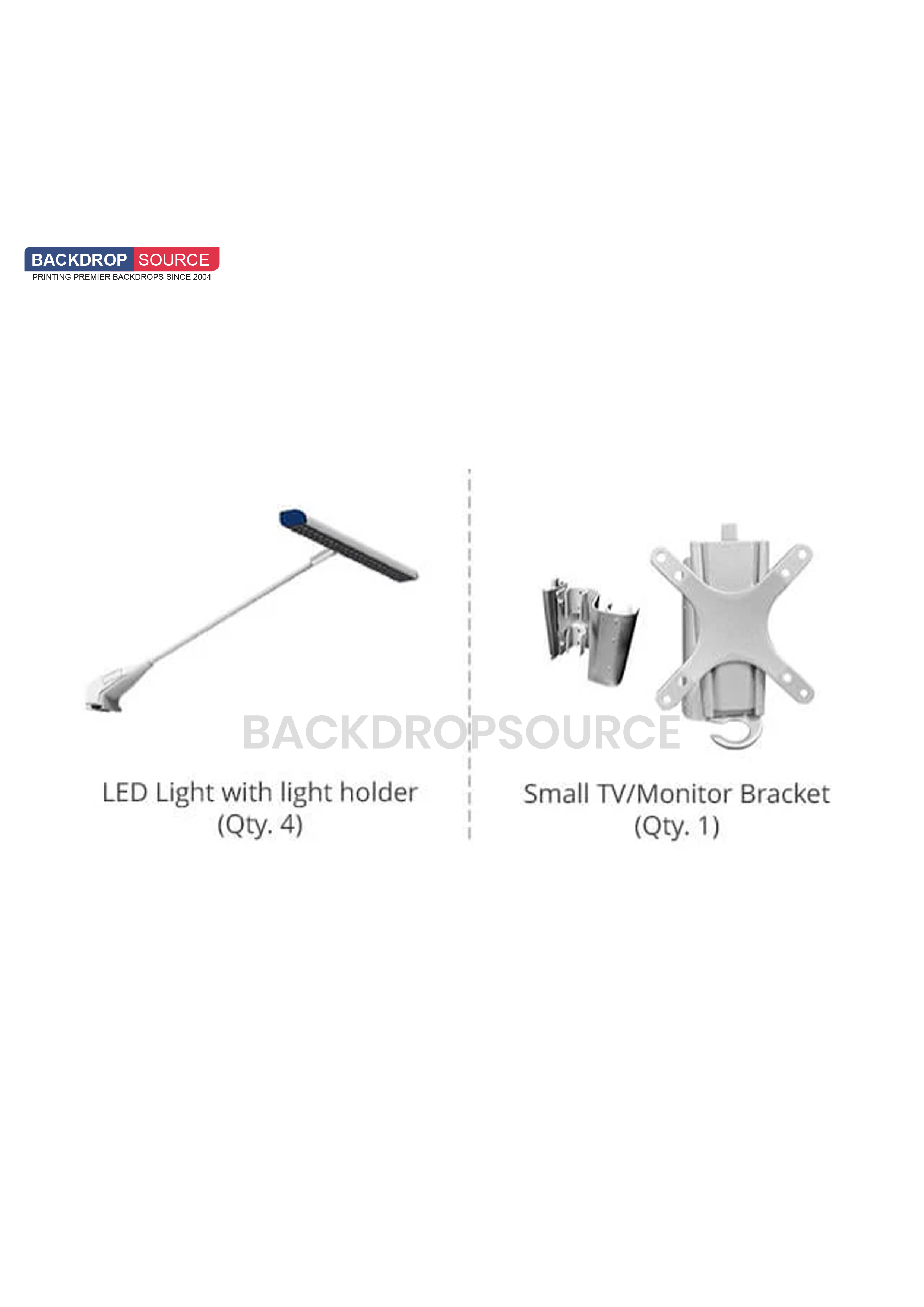 - Includes multiple printed fabric backdrops with cotton bags for flexible branding options