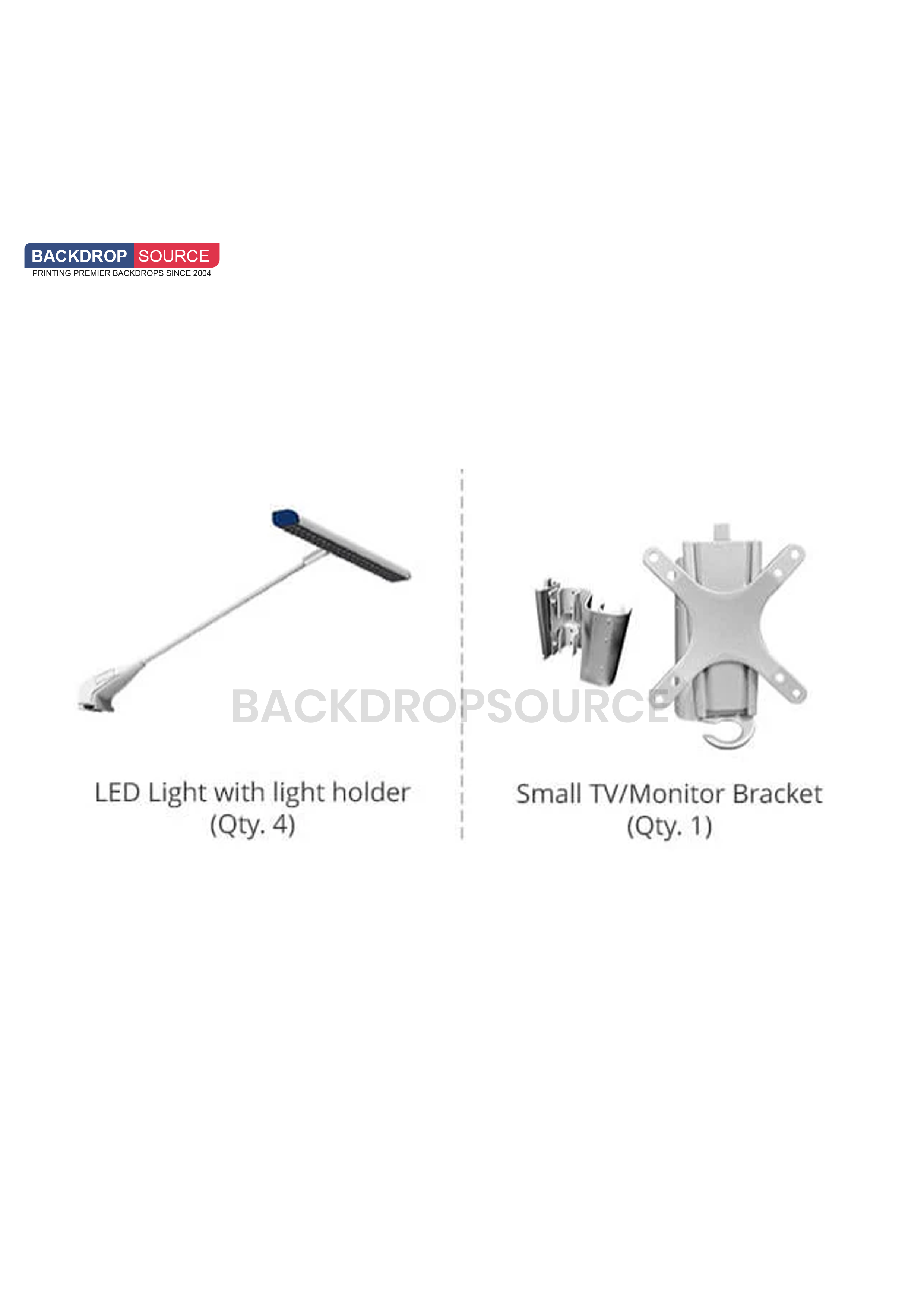 - Includes multiple printed fabric backdrops with cotton bags for versatile branding