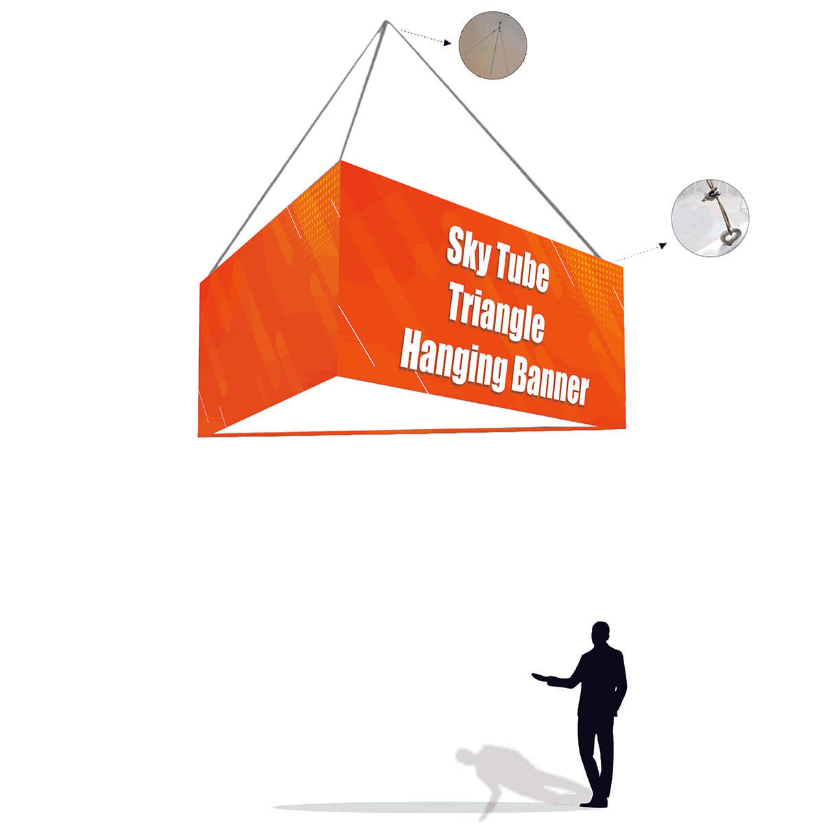 The SkyTube Triangle Hanging Banner is a striking and dynamic display solution designed to draw attention from every angle at trade shows, exhibitions, and large events. Suspended overhead, its triangular shape creates a visually engaging focal point, offering 360-degree visibility of your branding and messaging. Printed with high-quality dye-sublimation graphics, the banner delivers vivid, sharp visuals that ensure your brand stands out. The lightweight frame and sky tube design allow for easy assembly and disassembly, making it a practical choice for quick setups and transportation. Perfect for maximizing brand exposure and creating an impactful presence, the SkyTube Triangle Hanging Banner is ideal for exhibitors looking to make a bold statement and capture attention from afar.