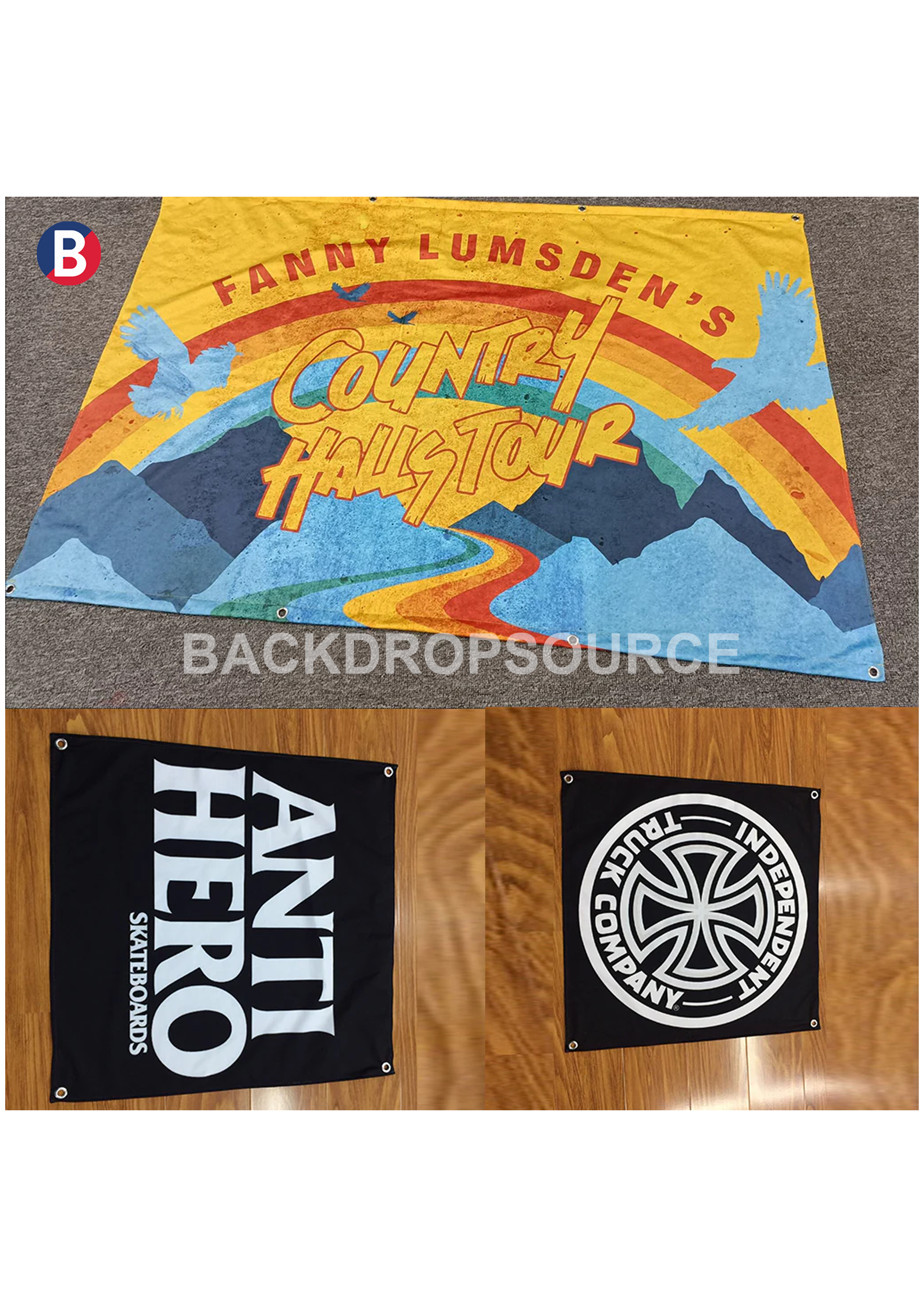 • Eyelets : Silver eyelets with a 0.55inch inner diameter are placed every 2 feet along the top, bottom, and corners. Custom spacing is available on request.